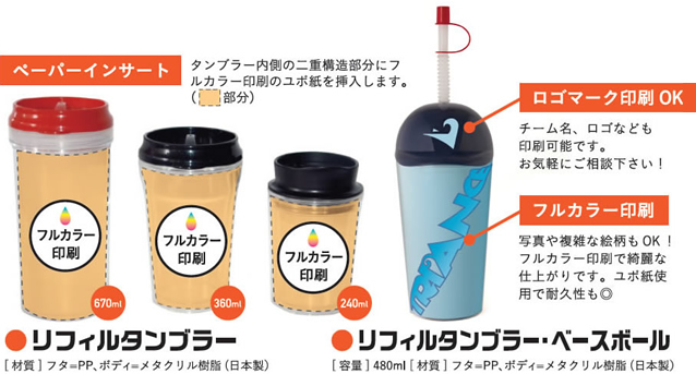 ロゴ、写真、イラストなどをユポ紙にフルカラー印刷して中に挿入できます。