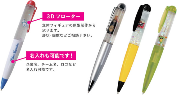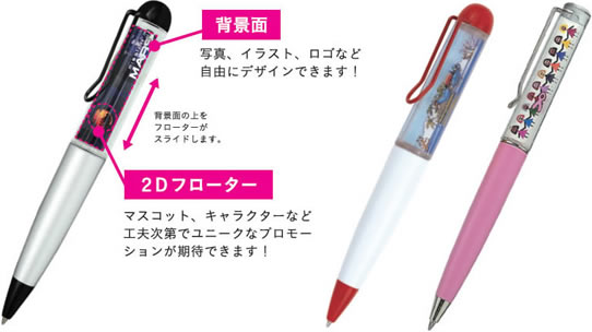 ペンを傾けるとボールペンの透明部分を小さなフローターが動く、見ているだけで楽しくなるボールペンです。